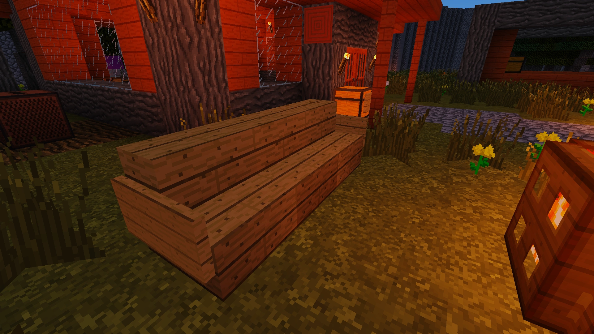 Chairs can also be made in multiple sizes by adding more stairs to the chair. A chair cant only be sat on with either one, two, or three stair blocks wide. When placing four or more sitars, the chair can't be sat on.