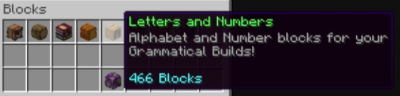 You will also notice at the bottom of the window a piece red stone, an enchanted book, and several book icons with numbers beside them. All of these are used to help navigate the window. Hovering over these icons will tell you, that the red stone if used as a way to go back, the enchant book tells you what page you are currently on, and all the other book icons are used to help you skip to new pages of Decorative Blocks.